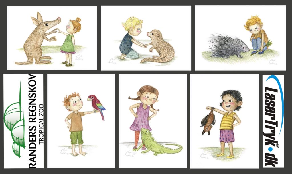 ”Jeg begyndte at tegne nogle af dyrene fra Randers Regnskov i møde med børn. Og det kom der seks illustrationer ud af, som kunne være fine til trykte kort. Derefter gik jeg i gang med at maile med både Lasertryk og Randers Regnskov, som begge var med på ideen. Og det var en herlig fornemmelse at trykke på send-knappen og vide at mine tegninger og mit arbejde kan hjælpe truet regnskov. ”