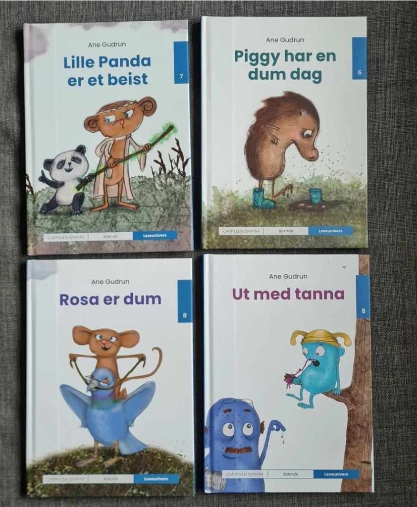 I 2024 prøvede jeg også for første gang, at nogle af mine bøger blev oversat. Fire af mine bøger udkom på nynorsk, hvor bl.a. Ud med den tand, som blev til Ut med tanna. Og lille panda er ikke et bæst, men et beist. Det har jeg grint lidt af.