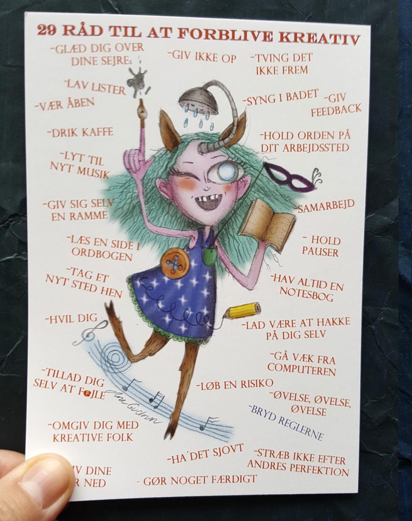 Nu er der nok nogle som vil mene, at det bremser den frie kreativitet at lave sådan en hurtigskrivning. Sådan oplever jeg det absolut ikke. For det første oplever jeg, at det får hjernen op på mærkerne, og for det andet, så tror jeg på, at kreativiteten også har godt af rammer, for at det ikke bare flyder ud. Og din hurtigskrivning er heller ikke nogen facitliste, men kan jo ændres.