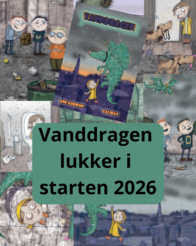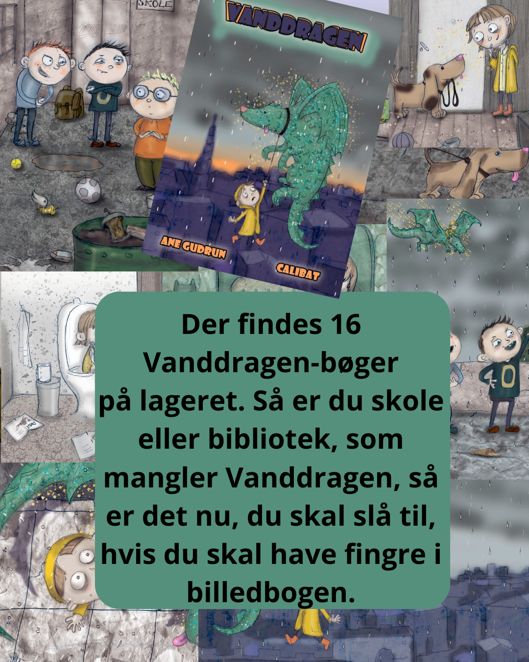 Vanddragen lukker i starten af 2026. Der findes 16 Vanddragen-bøger på det store lager. Så er du skole eller bibliotek, som mangler Vanddragen, så er det nu, du skal slå til, hvis du skal have fingre i billedbogen.
