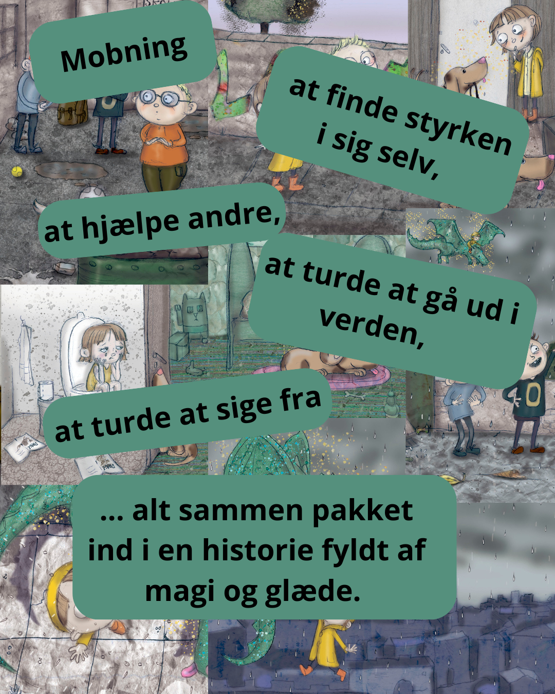 Hop ind og bestil de sidste, hvis du mangler billedbøger om: mobning, at finde styrken i sig selv, at hjælpe andre, at turde at gå ud i verden, at turde at sige fra … alt sammen pakket ind i en historie fyldt af magi og glæde.