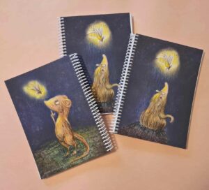 Notesbøgerne er 15 x 21 x 1,5 cm