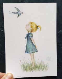 Stirrepige med alpehue og humlebi (A6) KORT